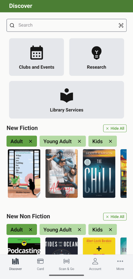 Creating a customizable home screen is the top LiDA feature in the 26.02 release. Libraries can now add titles and icons to the LiDA home screen that link to any screen in the app or to external URLs. This gives libraries greater flexibility to highlight featured collections, services, programs, and digital resources beyond standard Browse Categories.